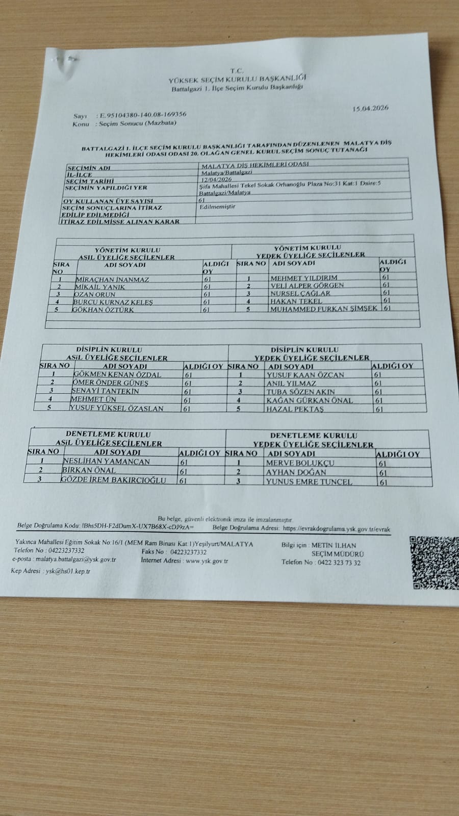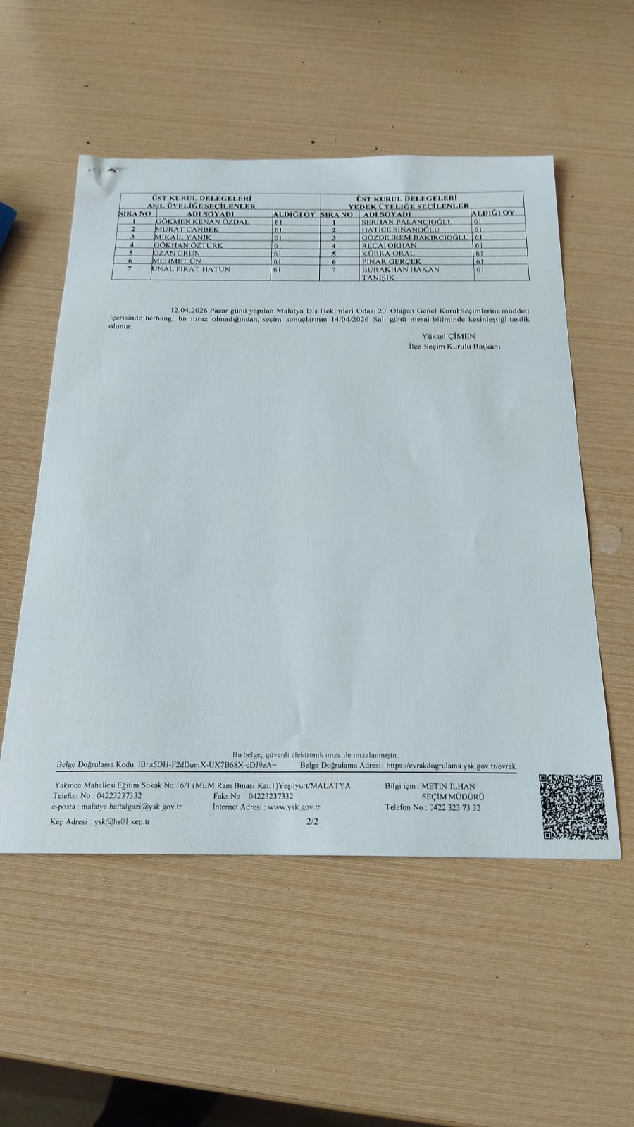 Malatya Diş Hekimleri Odası 20.Olağan Seçim Genel Kurulu tamamlandı Nisan 21, 2026Nisan 20, 2026 yazar admin